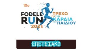 Ο Πανελλήνιος Σύλλογος «Η Καρδιά του Παιδιού», με την ομάδα δρομέων «Η ΚΑΡΔΙΑ ΤΟΥ ΠΑΙΔΙΟΥ», τον ΠΟΛΙΤΙΣΤΙΚΟ ΣΥΛΛΟΓΟ ΦΟΔΕΛΕ, και τον ΔΗΜΟ ΜΑΛΕΒΙΖΙΟΥ συνδιοργανώνουν τον 10ο αγώνα για την «Καρδιά του Παιδιού» στο Φόδελε, με δύο διαφορετικές πανέμορφες φυσιολατρικές διαδρομές 7 και 10,5 χιλιομέτρων, έχοντας ως σκοπό τη στήριξη του Πανελλήνιου Συλλόγου Ενημέρωσης & Βοήθειας Καρδιοπαθών Παιδιών και Ενηλίκων.